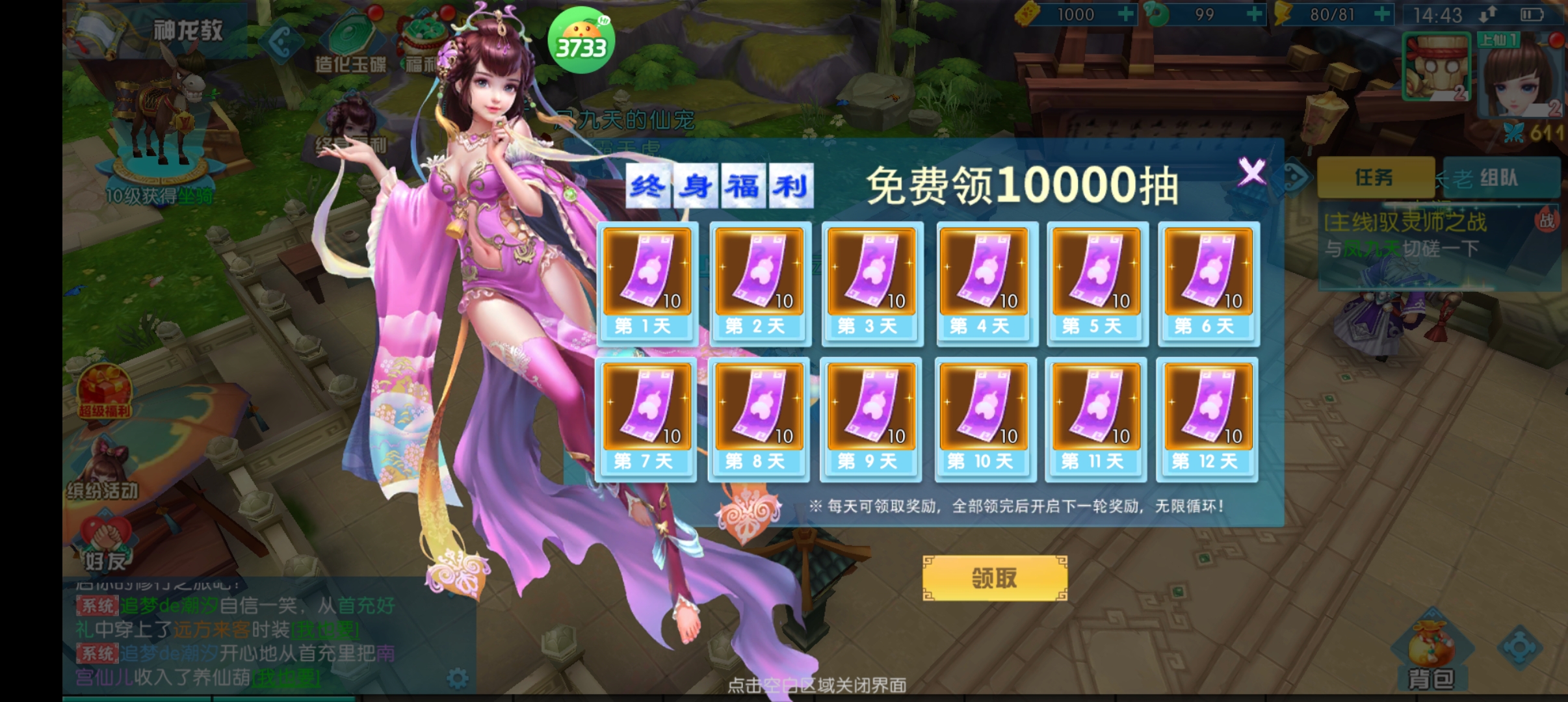 3、每天登陆领10抽,最高可免费领10000抽福利