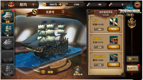 4. 每艘船只拥有不同的部件,提升部件等级能够提高加成效果。