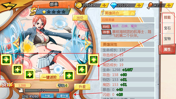 6、积累足够资源后,玩家可为英雄升级、穿戴装备、解锁新技能,大幅度提升战斗力,打造属于自己的最强队伍。