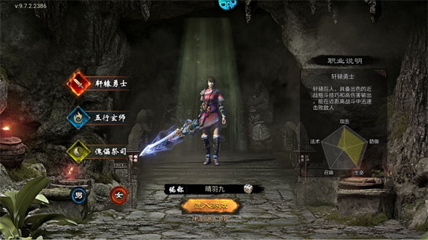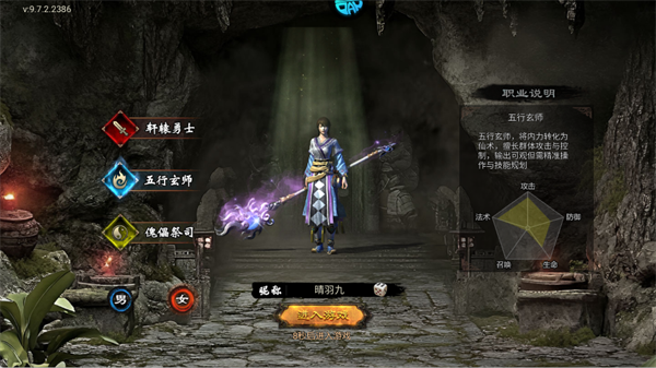 职业说明:五行玄师,将内力转化为仙术,擅长群体攻击与控制,输出可观但需精准操作与技能规划。