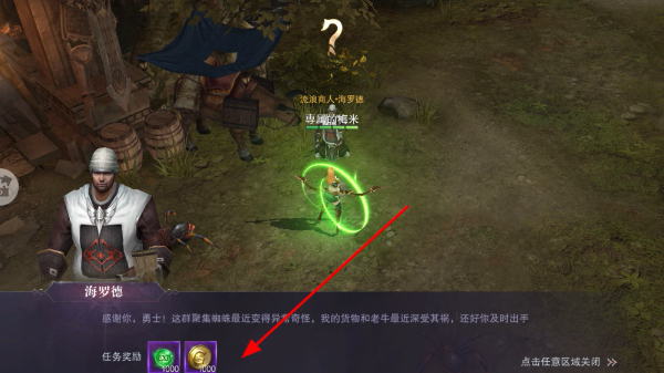 4、任务完成后,与流浪商人海罗德对话,领取经验与金币奖励,推进游戏剧情发展。
