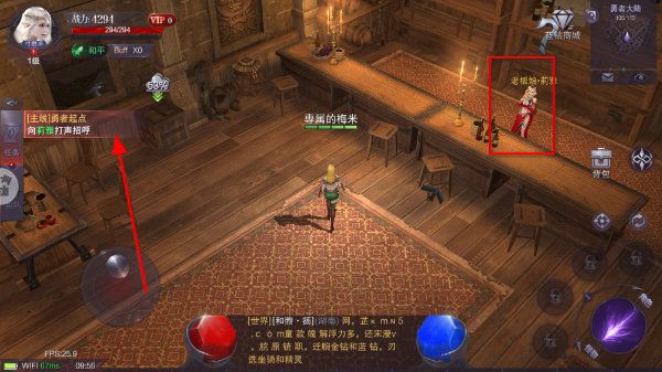 2、进入游戏后,跟随主线任务指引,向老板娘莉雅打招呼,开启新手剧情流程。