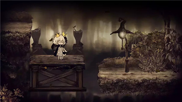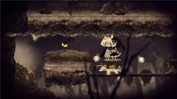 1、为了将王子安全地带到魔女所在之处,狼可以根据情况使用怪物与公主两种姿态。其中,在狼姿态下她可以登上高处、移动障碍物、打倒怪物;公主姿态则可以进入狼无法进入的空间,并且可以与王子合作解开机关谜题、摘下作为收集要素的花。