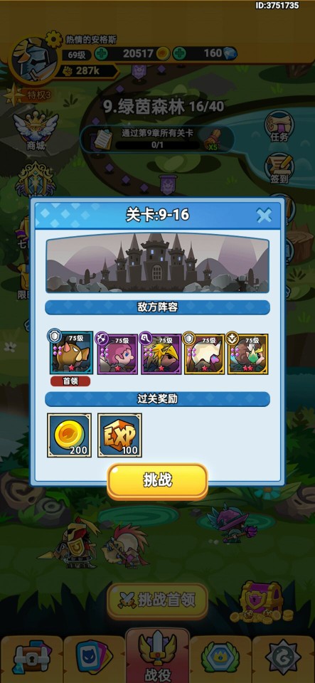 战役是《军临旗下》的主要玩法,每个章节分为多个关卡,除了每个章节最后的大首领之外,每四小关都会有一个小首领,关卡中敌人的战力也会随着章节逐渐提升。挑战关卡最主要的奖励就是经验和金币,可以用于提升冒险者的骑士团等级,每次挑战之前都可以在挑战界面查看敌方阵容,再根据敌方阵容调整自己的阵容即可。