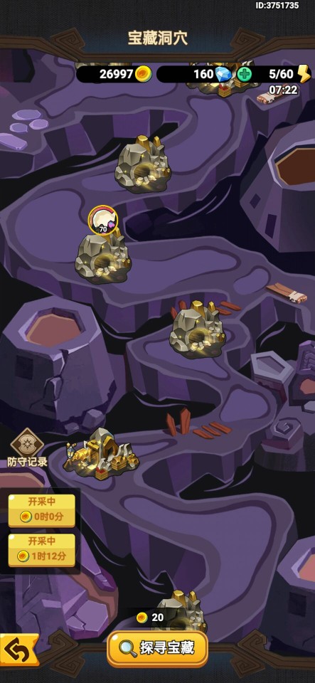 在宝藏洞穴中可以点击有头像的金币洞穴,掠夺敌人开采的金币,掠夺需要消耗体力,体力会随实现进行回复。各位冒险者可以通过探寻宝藏的功能,找到合适的矿进行开放或掠夺。