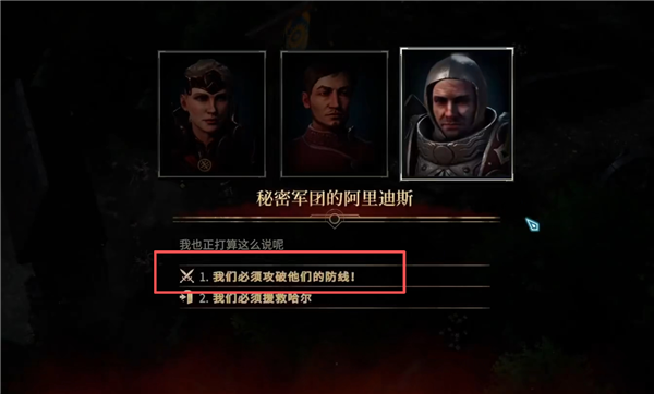 4、然后来帮奥莱恩的父亲,选择【我们必须攻破它们的防线】。