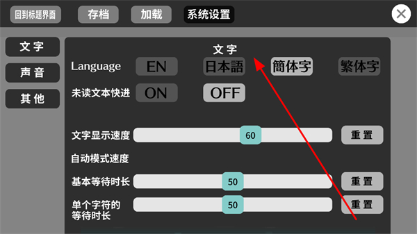 4、进入系统设置,选择简体字选项,将游戏文字设定为中文,方便阅读剧情内容。
