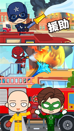 全明星小镇英雄消防队是我们手机必备的一款角色扮演游戏,经典依旧惊喜不断。全明星小镇英雄消防队相较于同类型游戏,和其他消防队员们一起,体验精彩欢乐的游戏过程,不过幸运的是英雄们正在小镇里旅行,各种防护服以及道具都为你准备好了,向房屋喷水,自由驾驶消防车,在这里你必须使用他们的超能力来灭火,然后驾驶消防车,直升机或救护车完