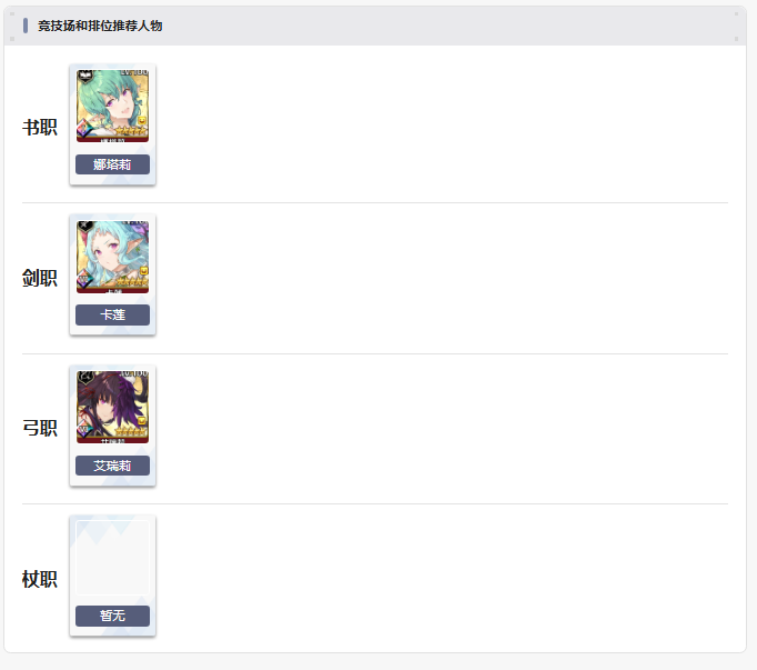 其实不管怎样的开局,不追求排位都是可以通关所有关卡的(其中包含借用佬们的角色)但是如果想要打排位或是竞技场的话,以下推荐几位抽了在竞技场和排位会比较舒服的角色